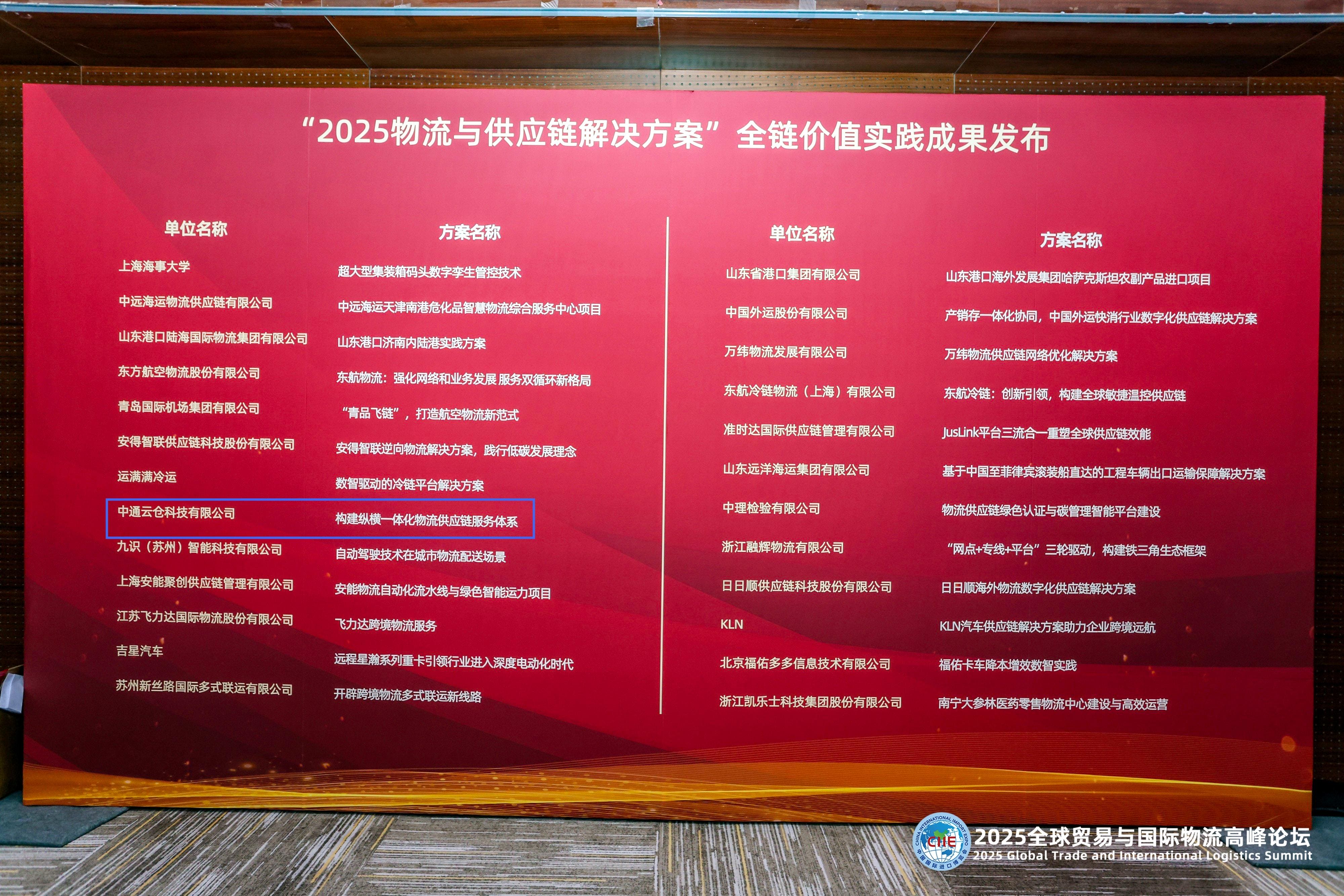 近日,作为进博会配套活动的2025全球贸易与国际物流高峰论坛隆重举办。论坛上,主办方正式公布《物流行业 ESG 信息披露评价规范》应用试点单位名单,中通云仓科技凭借在ESG 领域持续实践与显著成效,成功入选。
